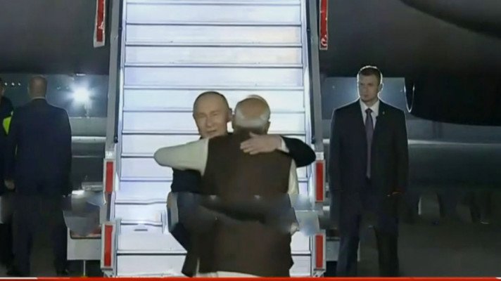 বিমান থেকে নামার সঙ্গে সঙ্গে রুশ প্রেসিডেন্টকে আবেগাপ্লুত হয়ে জড়িয়ে ধরেন ভারতের প্রধানমন্ত্রী। সেখান থেকে একই গাড়িতে করে যাত্রা শুরুর আগে দুই নেতা করমর্দন করেন এবং পরস্পরকে জড়িয়ে ধরেন।