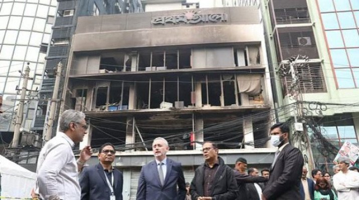 বিধ্বস্ত প্রথম আলো ভবনের সামনে ইইউ রাষ্ট্রদূত