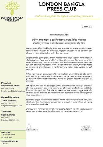 বাংলাদেশের জাতীয় দৈনিক প্রথম আলো ও দ্য ডেইলি স্টার অফিসে ভাঙচুর ও অগ্নিসংযোগ এবং ডেইলি নিউ এজ পত্রিকার সম্পাদক নূরুল কবীরের ওপর হামলার ঘটনায় তীব্র নিন্দা ও গভীর উদ্বেগ প্রকাশ করেছে যুক্তরাজ্যের প্রতিনিধিত্বশীল সাংবাদিক সংগঠন লন্ডন বাংলা প্রেস ক্লাব।