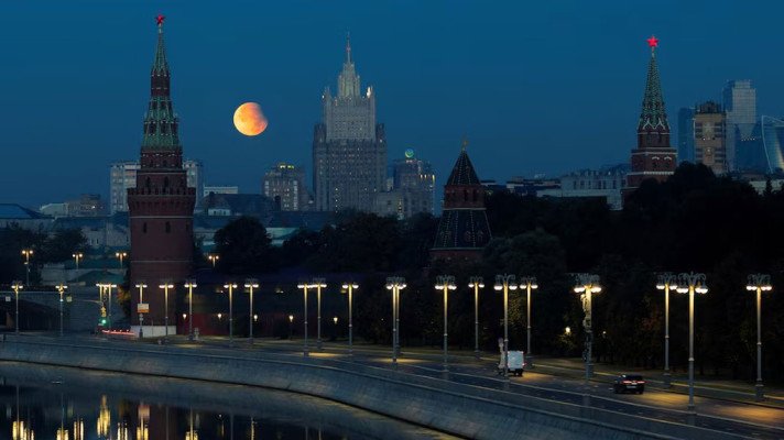 ক্রেমলিন টাওয়ারের ওপরের আকাশে দেখা যাচ্ছে আংশিক চন্দ্রগ্রহণ। ছবি: রয়টার্স