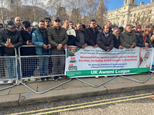 বাংলাদেশের আসন্ন জাতীয় সংসদ নির্বাচনে আওয়ামী লীগকে বাইরে রেখে ভোট আয়োজনের প্রতিবাদে ব্রিটিশ পার্লামেন্টের সামনে বিক্ষোভ সমাবেশ করেছে যুক্তরাজ্য আওয়ামী লীগ। বুধবার (৪ ফেব্রুয়ারি) দুপুরে লন্ডনের ওয়েস্টমিনস্টারে এ কর্মসূচি অনুষ্ঠিত হয়।