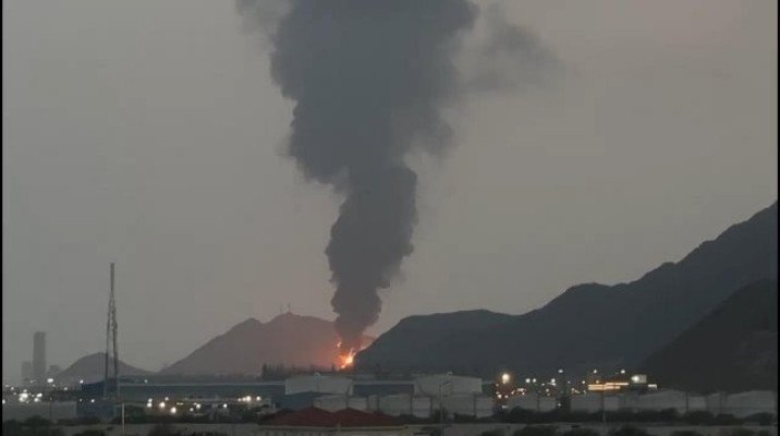 ইরানের মিসাইল হামলার পর আরব আমিরাতের একটি এলাকায় অগ্নিকাণ্ডের দৃশ্য